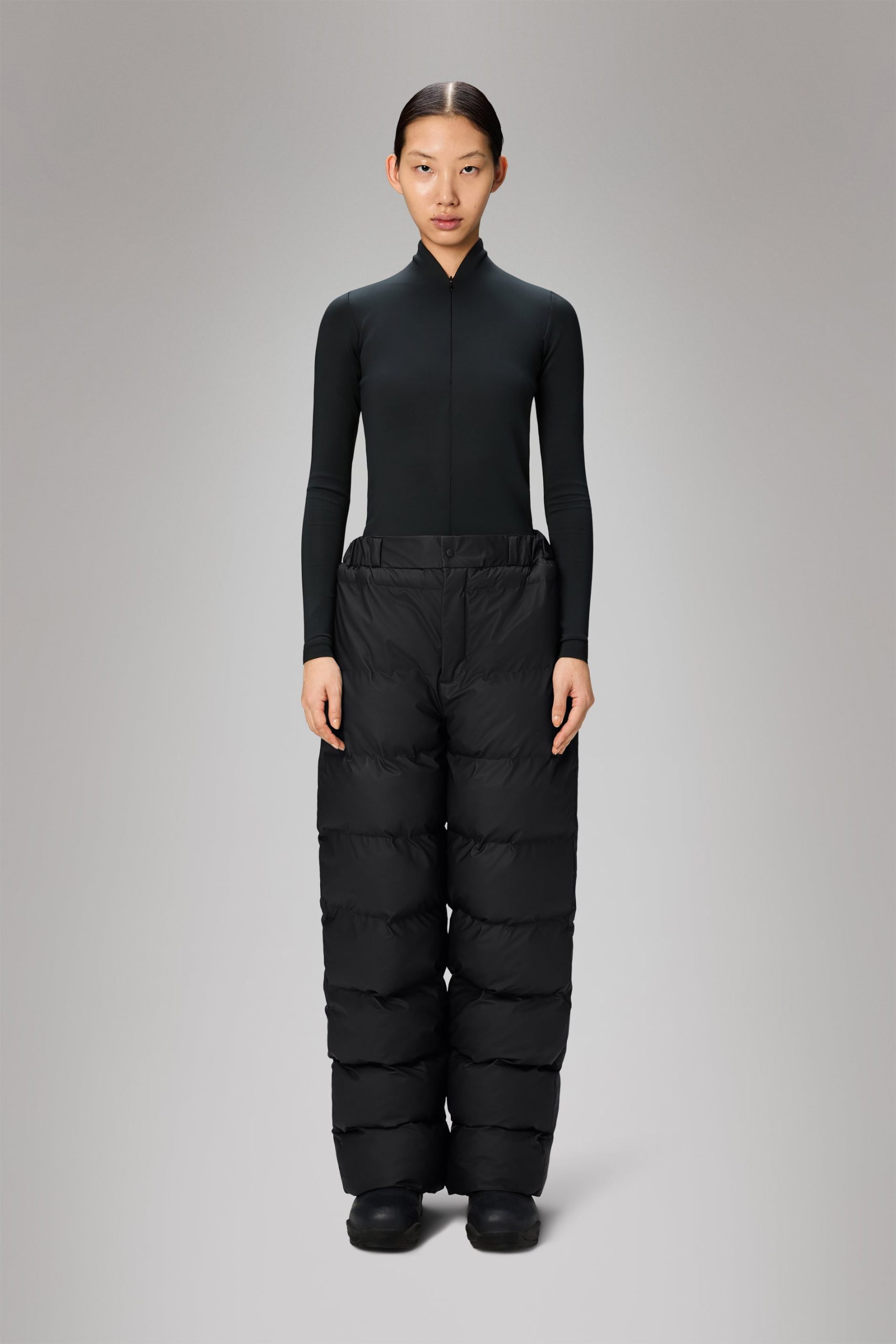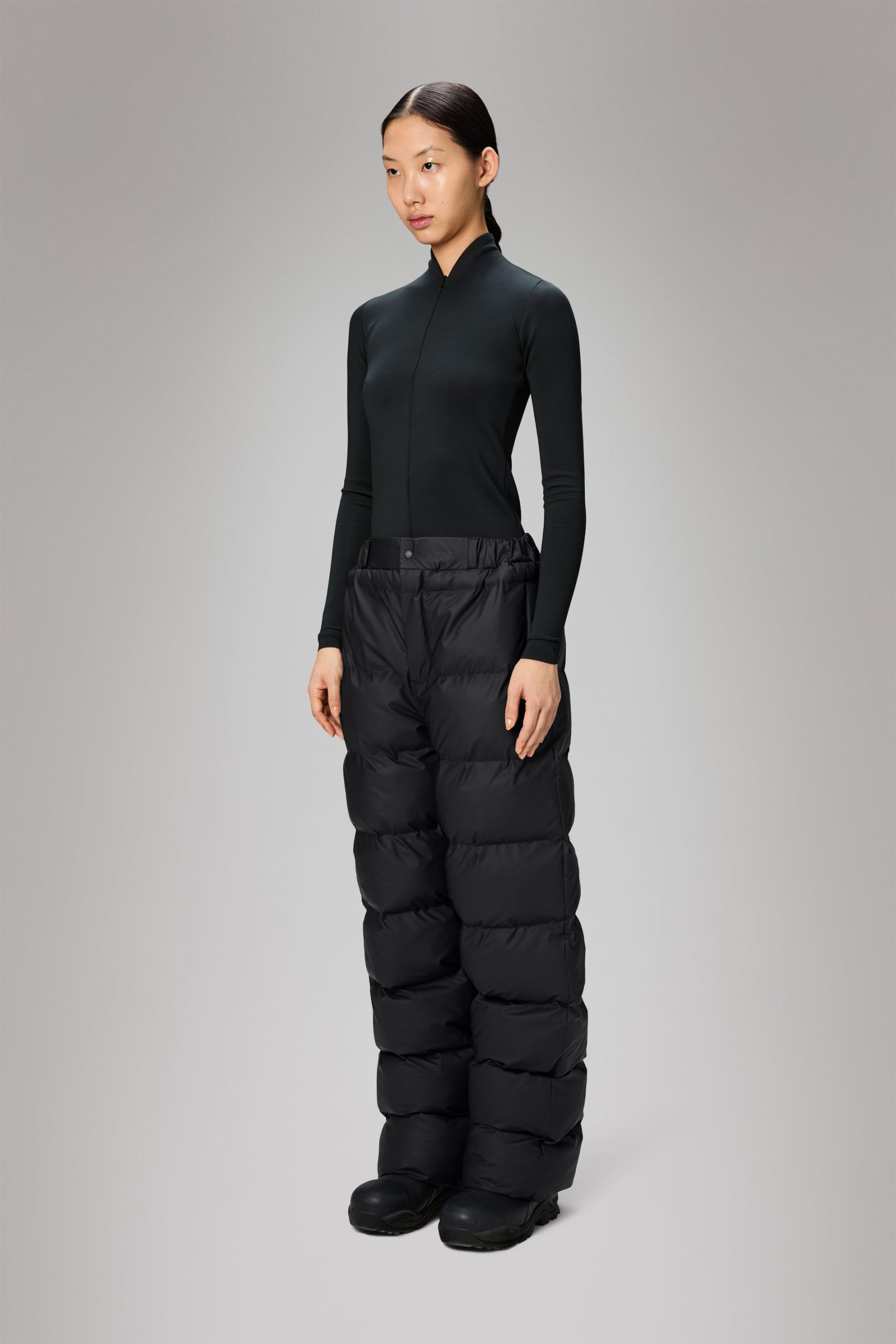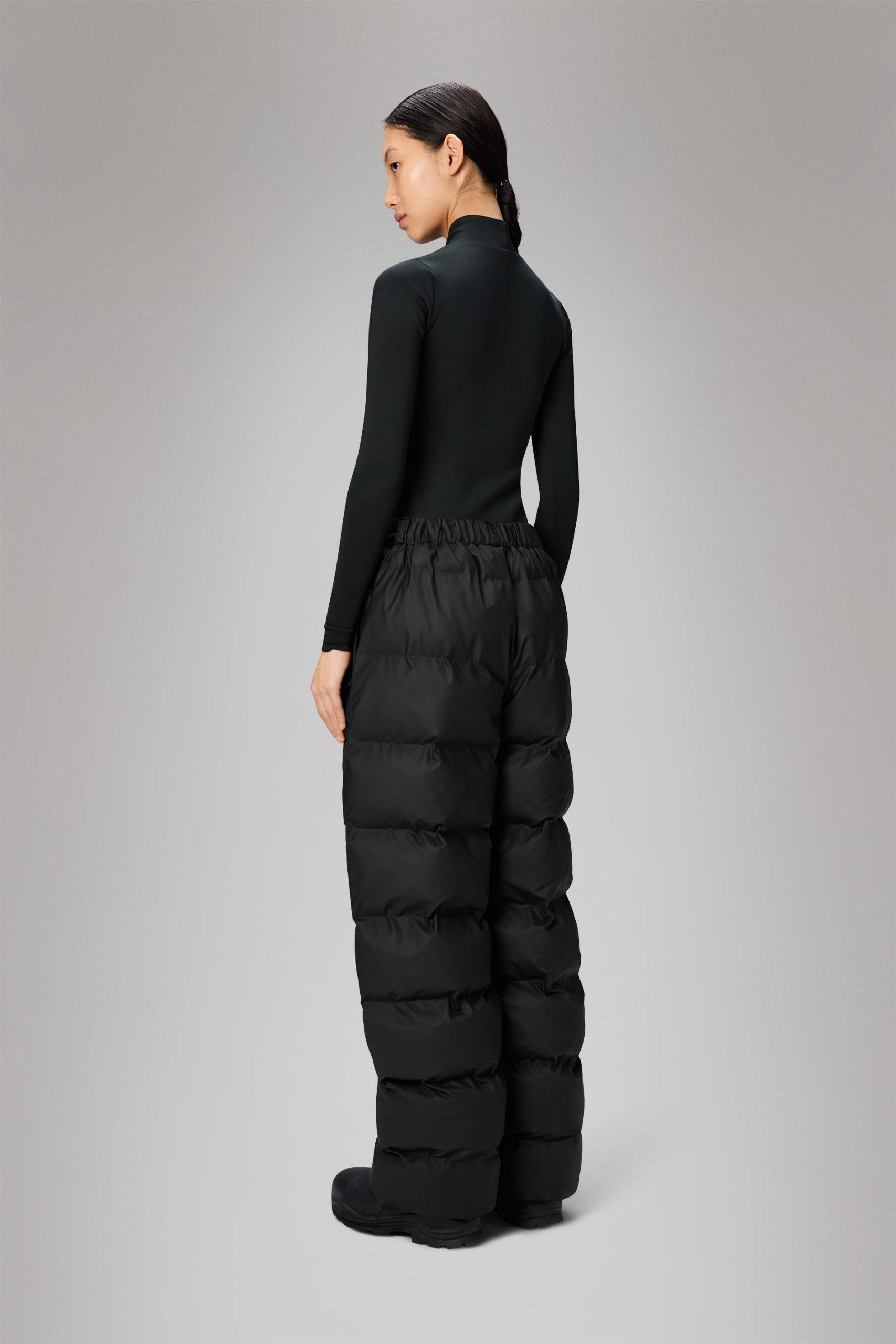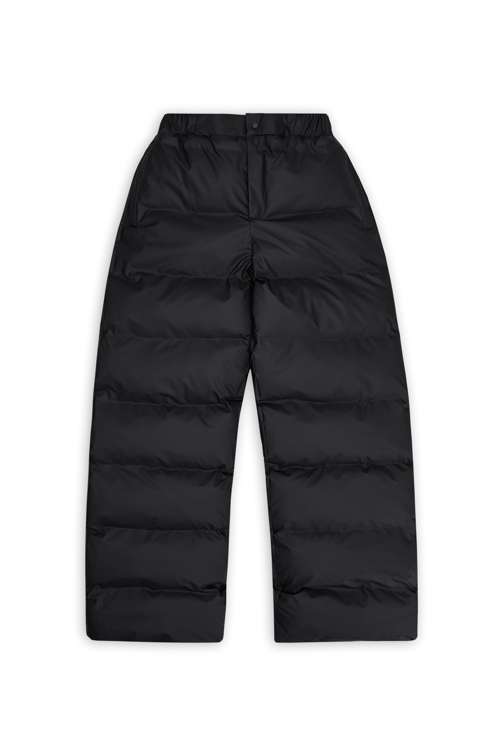The elevated puffer pants are built on woven chamber technology and cut from Rains’ signature PU fabric with welded seams. The finish is lightweight with a smooth feel.